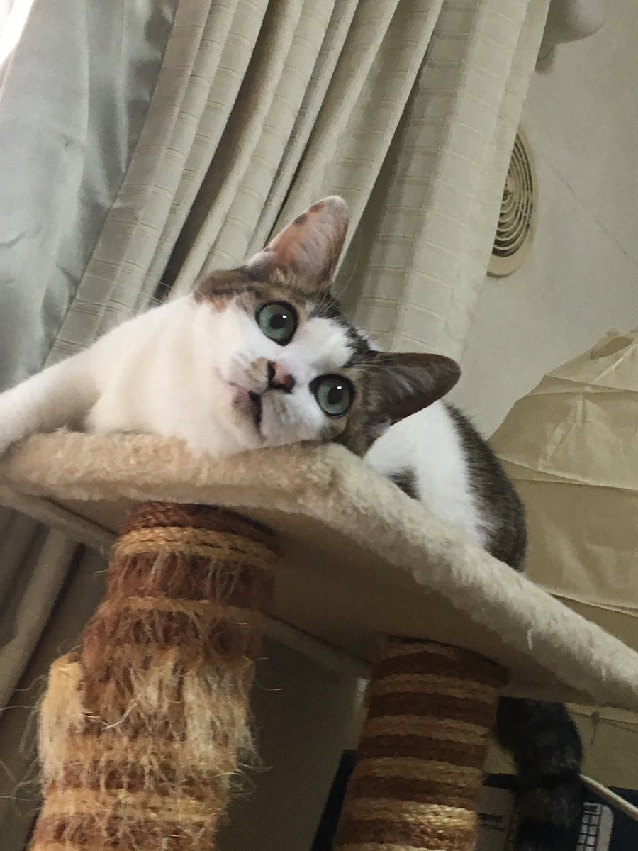 猫の目って緑や黄、青色などいろんな色があるように思いますが、実は子猫の時はみんな青色です。これが大人になるにつれてメラニン色素が蓄積し、緑や黄色に変わっていきます。メラニン色素が少ない子は青っぽい色や緑色に、多い子は黄色や茶色に近づきます。みなさんの猫ちゃんは何色ですか?