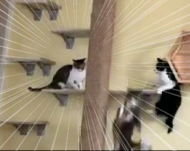 落ちる猫ちゃん2匹に目がいきがちですが、この横で見てる全てを察知して悟りを開いたような表情の猫ちゃんも良い味出してるよね~!!!!