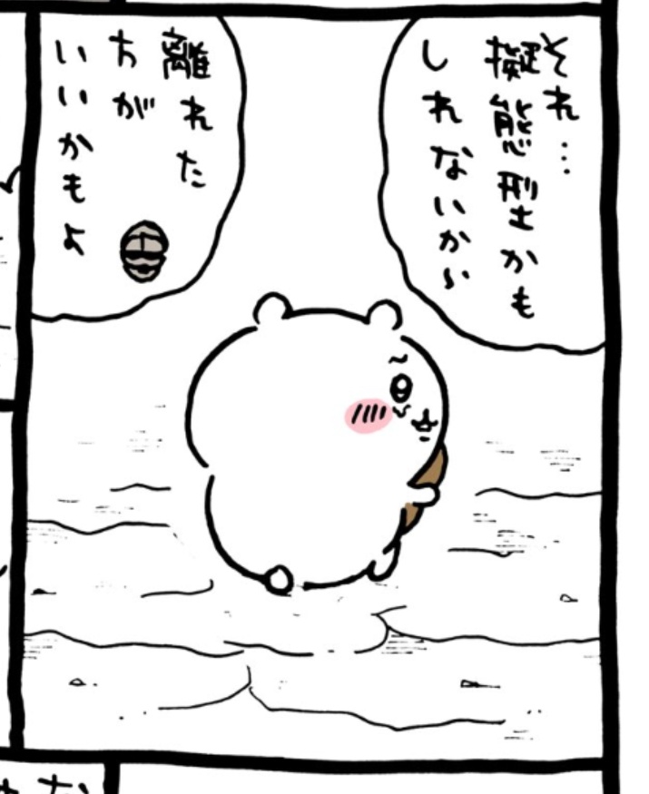 離れた方がいいかもよ、って言う鎧さんの言い方が好きです。離れるんだ!とかじゃなくて。離れたくないだろうから、ちいかわちゃんの自主性に任せていると言うか。