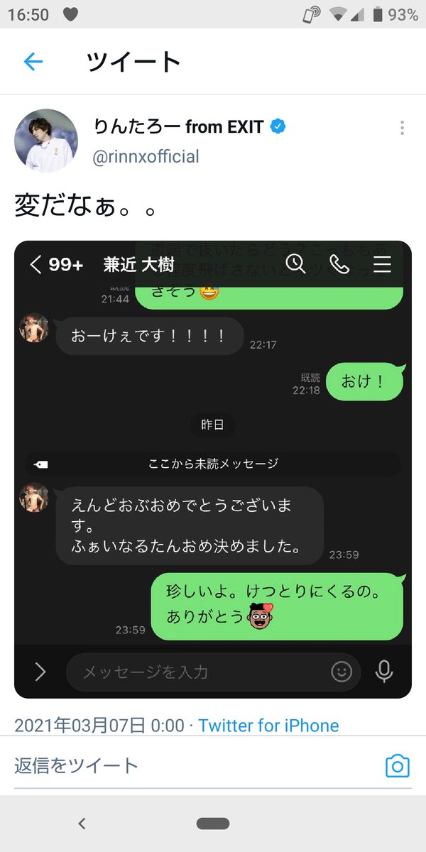 2021.03.28 ツイート maru大学の課題だと思われてる? タケちゃん@Tokosaka_PR大学の課題だと思われてる?00:14 – 2021年03月28日返信リツイートお気に入り ツイートに対するネットの反応ちょろいつき@ituki_ha_ki違うから!誰もが誕生日の初めを争うけど その日の最後にお祝いしてその人の全てを私が最後に塗った私のものってことよ!!! 愛ゆえの行動なのよ!!!! ソースは私21:55 – 2021年03月29日返信リツイートお気に入りふりかけ♭@Free_ES_これ見たおかげで忘れかけていた先輩の誕生日メッセージを送る事が出来ました。ありがとうございました🙇🙇20:21 – 2021年03月29日返信リツイートお気に入りばし子🐴🎀@bashi023僕も前にやったわ…😨😨😨11:56 – 2021年03月29日返信リツイートお気に入り森近 シンジ@Project03265482言って貰えるだけありがたい。。。08:30 – 2021年03月29日返信リツイートお気に入り咲@てへぺろ@saki_10_27_捉え方が面白い22:52 – 2021年03月28日返信リツイートお気に入りゆゆか@yuyukadayoooくさ22:09 – 2021年03月28日返信リツイートお気に入りジュン(祝)2000安打 坂本@94QyooZKwZ8Id1jワロタ なるよね20:44 – 2021年03月28日返信リツイートお気に入りヨッシー💍 ᕷ˖°🎋🍚🌾🎃☂🍚🈳@Yoshii_pokemon大学のwwww課題wwww19:58 – 2021年03月28日返信リツイートお気に入り YUFFY🐊🦄推尊我死🤪🤙@YUFFY_onepiece完 全 に 一 致 https://t.co/plMGMAs4ue16:51 – 2021年03月28日返信リツイートお気に入り