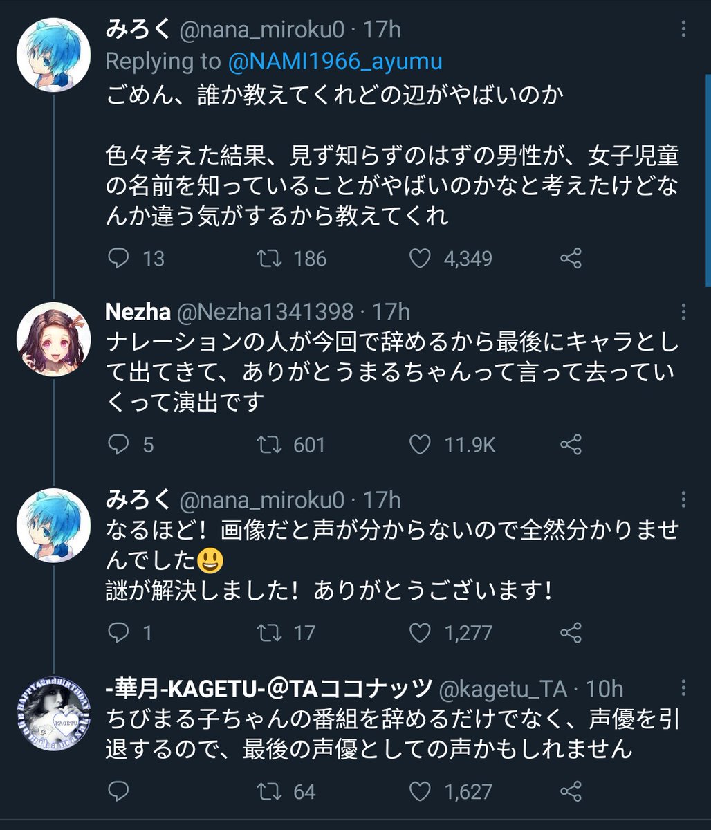 「ありがとう まるちゃん。」だけで何人泣かせたんだ!?この一言に30年分の思い出とか感謝が目一杯詰まってる。やっぱプロの声優さんはすげぇ…