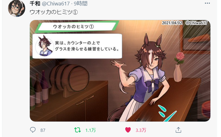 2021.04.02 ツイート maruウオッカのヒミツ① 千和@Chiwa617ウオッカのヒミツ①10:58 – 2021年04月02日返信リツイートお気に入り ツイートに対するネットの反応鳥居譲治@negi_niwatoriU゚Д゚≡゚Д゚U13:32 – 2021年04月03日返信リツイートお気に入りクズノハ=ヒルクラスキー=ろうき@rouki666そっちかーー!!!! www12:07 – 2021年04月03日返信リツイートお気に入り9さん(石川)@hokuriku9sanそのグラスではないw11:06 – 2021年04月03日返信リツイートお気に入りミルク@0624Mirukiそのグラスじゃないww10:07 – 2021年04月03日返信リツイートお気に入りサネ@_sanemichiここまでサムネが仕事してるの 久し振りに見て感動してる07:26 – 2021年04月03日返信リツイートお気に入りかぁくん@nogiroyumimu違うそうじゃないw07:23 – 2021年04月03日返信リツイートお気に入りリビエラ@DQ10@DQ1010サムネイルの切れ方が絶妙ねw04:26 – 2021年04月03日返信リツイートお気に入り⚡かなぶん@kanabun3825これを待っていた どんだけ待ち続けていたことか…03:07 – 2021年04月03日返信リツイートお気に入り こはさん✯RENM- 又は谷間てゃん@D_cdm_Cこのリプで声出して笑ってしまった https://t.co/kUgC3TyY3y02:12 – 2021年04月03日返信リツイートお気に入りTENGA2@ten_tenga2わろたw02:12 – 2021年04月03日返信リツイートお気に入りamomon@amomon1006これ好きすぎる01:36 – 2021年04月03日返信リツイートお気に入りTiya 沈没@_23yuu笑った01:06 – 2021年04月03日返信リツイートお気に入りフリューゲル 男の娘アークス☆*°@wing1108_pso2違うそうじゃない笑23:02 – 2021年04月02日返信リツイートお気に入りトーリ@tohrikyun違うw そうじゃないww22:20 – 2021年04月02日返信リツイートお気に入りgaito@チョコボ鯖@takamati開いたらまさかで草21:17 – 2021年04月02日返信リツイートお気に入り 軍師トオサカ@確率に○される男@tosakaFEHこのネタ見るの二回目なんだけどw まぁウマ娘のグラスはグラスワンダーを連想するけどもw20:56 – 2021年04月02日返信リツイートお気に入りwazikuto@wazikutoクリックして20:29 – 2021年04月02日返信リツイートお気に入りべにあ@Tkm_ALLこの感じ、やられたw https://t.co/7sUQklae9y20:27 – 2021年04月02日返信リツイートお気に入りミレイユ@mi_l_eワロタ19:51 – 2021年04月02日返信リツイートお気に入りライ@gmgmlv1ふふっ…てなった19:45 – 2021年04月02日返信リツイートお気に入り快斗@NlDurJzgWY9xv9pすこwグラス違いw19:42 – 2021年04月02日返信リツイートお気に入りぜろ@khraoi2一通り滑った後で「スペルが違います」って怒られそう。19:13 – 2021年04月02日返信リツイートお気に入り 少年@夏コミ応募済@shonenあちらから差込です18:47 – 2021年04月02日返信リツイートお気に入りゴールドKUMA@KUMASAN_NCP131そういうことなのかwwwww18:26 – 2021年04月02日返信リツイートお気に入り長時間洋裁AFRO@LTDMAFRO確かにグラスwww18:07 – 2021年04月02日返信リツイートお気に入りマルメン@Woody_Malmen何が好きって実馬同様、何があっても動じてないグラスが好き(笑17:55 – 2021年04月02日返信リツイートお気に入りAL@呉鎮@AL_ARETHAめっちゃ滑るwww>RT17:48 – 2021年04月02日返信リツイートお気に入り⚓くるみみンスキー🍊🍶🍷🍸🍹@ysysyyyy草しか生えなくて草17:45 – 2021年04月02日返信リツイートお気に入り係長@趣味アカ@Kakaricho0083一応、先輩やぞ?w17:35 – 2021年04月02日返信リツイートお気に入り湯飲み@sencha_inYunomi実にワンダー17:30 – 2021年04月02日返信リツイートお気に入りヲガタ@BBB_1111_04ルドルフ会長「これが本当の”グラススライダー”だなっ笑」エアグルーヴ「……。」16:49 – 2021年04月02日返信リツイートお気に入り尾中栖伊太@onaka5502失敗してこぼしてる絵かと思ったら斜め上のオチだった16:46 – 2021年04月02日返信リツイートお気に入りつちのこらぴす🍄@sugomorinamekoん?こんな豆知識あったっけ? とりあえずグラスちゃんが滑らされてるぞ(笑)16:39 – 2021年04月02日返信リツイートお気に入りぬぽ@三笑心泣@nupotto_precureあるぇ!?コレ既視感やの?日付入っとるから前に見たのとは違うやつか…16:03 – 2021年04月02日返信リツイートお気に入りはむぱ✌(๑ᕦڡᕤ๑)✌@hmp11711誰かが描いてくれるのを待ってた16:00 – 2021年04月02日返信リツイートお気に入りまさ@ブルボンの担当トレーナー@masa79351641そういうことだったのか…!15:50 – 2021年04月02日返信リツイートお気に入り🚴ヤンカマ🐎@SPECIALIZED_KAMグラスwwwwww15:48 – 2021年04月02日返信リツイートお気に入りようさん@arksyou3画像 開いて腹筋死んだ15:46 – 2021年04月02日返信リツイートお気に入りしぐなす@オレンジぷらねっと@cygnus003ワロタww グラスを滑らせるってグラスワンダーの方かいww15:29 – 2021年04月02日返信リツイートお気に入りクドわふカ@KudowafHバーテンダー「こちら、あちらのお客様です」15:25 – 2021年04月02日返信リツイートお気に入りPUI PUI max@max_touhuグラスワンダー!!足色はおとろえない!!!15:19 – 2021年04月02日返信リツイートお気に入り佐藤 悟@Happy_BinauraLもう見た15:13 – 2021年04月02日返信リツイートお気に入りフナッシー@チーム雷電推し@MaqeenVodkaグラスwww15:12 – 2021年04月02日返信