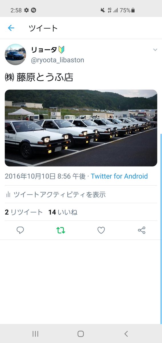 2021.04.03 ツイート maru藤原とうふ店(自家用) 全国チェーン店 かい@ki_ae86藤原とうふ店(自家用)全国チェーン店11:02 – 2021年04月03日返信リツイートお気に入り ツイートに対するネットの反応Yutaka Ayano@yutakadekatuナンバープレートまで合わせに来てるのかw14:15 – 2021年04月04日返信リツイートお気に入り燃えよヒラゴン@hiragon7aコレで、ハチゴーが1台紛れ込んでいたら面白いけどwむしろ、今はハチゴー自体レアらしい。たいていはスクラップにされて、現存が少ないらしい。13:11 – 2021年04月04日返信リツイートお気に入り小豆沢 こはね@taibaro85774014懐かし12:33 – 2021年04月04日返信リツイートお気に入りかさばる兄さん△(模印良品)@potechimax全国展開だったのか(笑)昔の職場の近くでは、同じくパンダトレノで「藤原もうふ店」と書かれたのが走ってたよ。 良いセンスだ( ´艸`)12:11 – 2021年04月04日返信リツイートお気に入りぴかもん🦋【レ】🌸@PlKAMONN普通にすごい ここまで86の状態いいのってオーナーが大切にしてる証拠よな12:03 – 2021年04月04日返信リツイートお気に入りすぐる(≧∀≦)@sugurugumiドレが本店なんだろ?!wwww11:58 – 2021年04月04日返信リツイートお気に入り52@unkono334ワイの近所にも藤原とうふ店仕様のが停まってるんだよなぁ 絶対仲良くできる11:50 – 2021年04月04日返信リツイートお気に入り@一説@SdprLgb全県 制覇11:45 – 2021年04月04日返信リツイートお気に入り ネコニウムシリーズver.Ka@chatrangGP01_Fb手前の方が関西支部長かな11:26 – 2021年04月04日返信リツイートお気に入りトトさん@gakunaviplusチェーン展開してたのか!(違)11:20 – 2021年04月04日返信リツイートお気に入り🦴🐕🎶Garage_MOTO🛣🚘🚧@FUNKY_VW007_GTI美味しいとうふ、お届けします!10:20 – 2021年04月04日返信リツイートお気に入りあばると議長@express595全国チェーン店は草10:16 – 2021年04月04日返信リツイートお気に入りhirune5656 @ バイクはお洒落な乗り物@hirune565656豆腐屋チェーン店展開w09:26 – 2021年04月04日返信リツイートお気に入り茂木なつきを許すな@q417pパンダトレノ沢山!かわいいな09:20 – 2021年04月04日返信リツイートお気に入りマー君@ウーバーイーツ@mah_kunn昨日見たのこれかな09:07 – 2021年04月04日返信リツイートお気に入り 🎴えだまめしゔぁ🧸🍼@EDAMAMESIVAドラえもん[頭文字D] https://t.co/7XEJmsN6N808:40 – 2021年04月04日返信リツイートお気に入りみぃちゃん@バイク休眠@sasuraigsx全国チェーン店wwwwwww08:14 – 2021年04月04日返信リツイートお気に入りまつも@HayateMazmoこんだけのAE86、、、、 総額いくらになるんやろか(笑)08:13 – 2021年04月04日返信リツイートお気に入りKENTARO@4AGEUAE86TRUENOボンネットカーボンってことはロールバーも装着済みかな?エンジンは1万1千まで回る仕様だろうなぁー07:45 – 2021年04月04日返信リツイートお気に入り放蕩自由JIN:次走マジで未定@JIN33987665カッケー07:33 – 2021年04月04日返信リツイートお気に入りミルコメたん@one_parsec黒いボンネットはデザイン的に何がいいのかわからない? 軽量化? シートを外せば良い。07:06 – 2021年04月04日返信リツイートお気に入りarata@tataratter時代との流れとともに全国チェーンに😂笑06:43 – 2021年04月04日返信リツイートお気に入り სƕいㄘ@sinichi1002CGじゃないよな😆 凄い光景🤣素敵です😍💕06:26 – 2021年04月04日返信リツイートお気に入りハワード@howard_k1mks2ii早朝ドライサンプの4AGエンジン積んだAE-86がドリフトしながら豆腐配達するのですね!!04:57 – 2021年04月04日返信リツイートお気に入りヤン ちゃん (yuic-yam)@Yam_Yuic1110自家兼用者で全国制覇しちゃったか~ 藤原とうふ店もFCになったとは恐れ入ったわ… 30年近い年月って恐ろしい!!04:48 – 2021年04月04日返信リツイートお気に入りねおっち@neoneo4946チェーン店‼️わろた04:30 – 2021年04月04日返信リツイートお気に入りオッティ@DEFENDER@CM16SRL_1966乗り熟せてる輩は居るのか?! 俺は9年乗ったが、全然ダメだった・・・ターボ車の方が全然ラク!!01:31 – 2021年04月04日返信リツイートお気に入りÀEX×N@N_JPSPかっこよ00:52 – 2021年04月04日返信リツイートお気に入りMASA@pikipikinmas高雄でもよくみる🤔00:45 – 2021年04月04日返信リツイートお気に入り🚅えぬななひゃくえすかもめ🇯🇵祝!上田電鉄全線運転再開@KAMOME_N700SkeiAE86という車種だけで宣伝できるのほんと凄いよな…w00:28 – 2021年04月04日返信リツイートお気に入りうぐいす@Ug_916乗るの夢だなぁ…00:17 – 2021年04月04日返信リツイートお気に入りAoundBarAlast@AoundBarAlast夢のような光景00:07 – 2021年04月04日返信リツイートお気に入りMETEORA@xx_METEORA_xx5ケタのナンバープレートは全部お手製?🤔00:05 – 2021年04月04日返信リツイートお気に入りあさり@asari_shiうちの近所にも1台居る ここのチェーン店の車両は80年代の車なのに物持ち良いよな00:02 – 2021年04月04日返信リツイートお気に入りさっちゃん@デイトナ修復率90%@777_sparrow藤原拓海がたくさんいる!!!!23:33 – 2021年04月03日返信リツイートお気に入りせんすい改二乙@sensuikazuhirohttps://t.co/un6DxmcFlS 藤原とうふ店号を再現するためにCIB