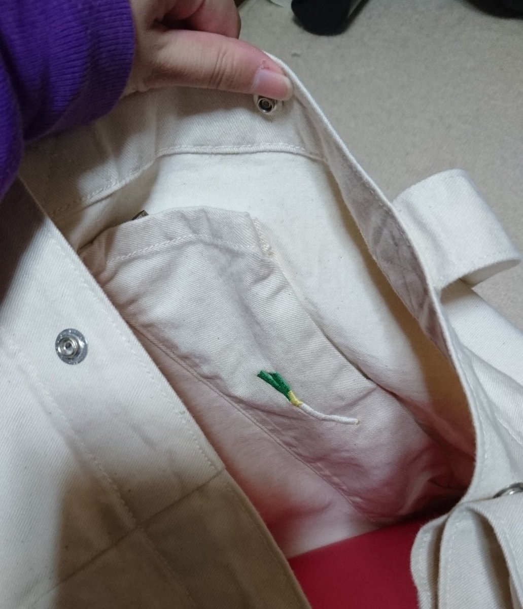 買って一ヶ月ぐらい普通に使ってた謎の店のショッピングバッグ、革命的な機能「NEGI HOLDER」を使用するタイミングが遂に訪れた。
