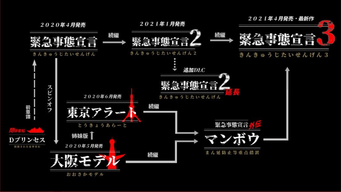 この関係図を見るに、最も内容が濃かったのも、人々をドキドキさせたのも恐怖させたのも、第一作目の『緊急事態宣言』が突出してる気がする。