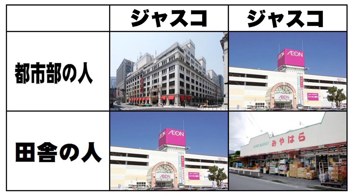 都市部の人と、田舎の人のデパートとスーパーの認識の違いはこれくらいあると思う。これが超都会の人になると、スーパーがまいばすけっとになってしまう。