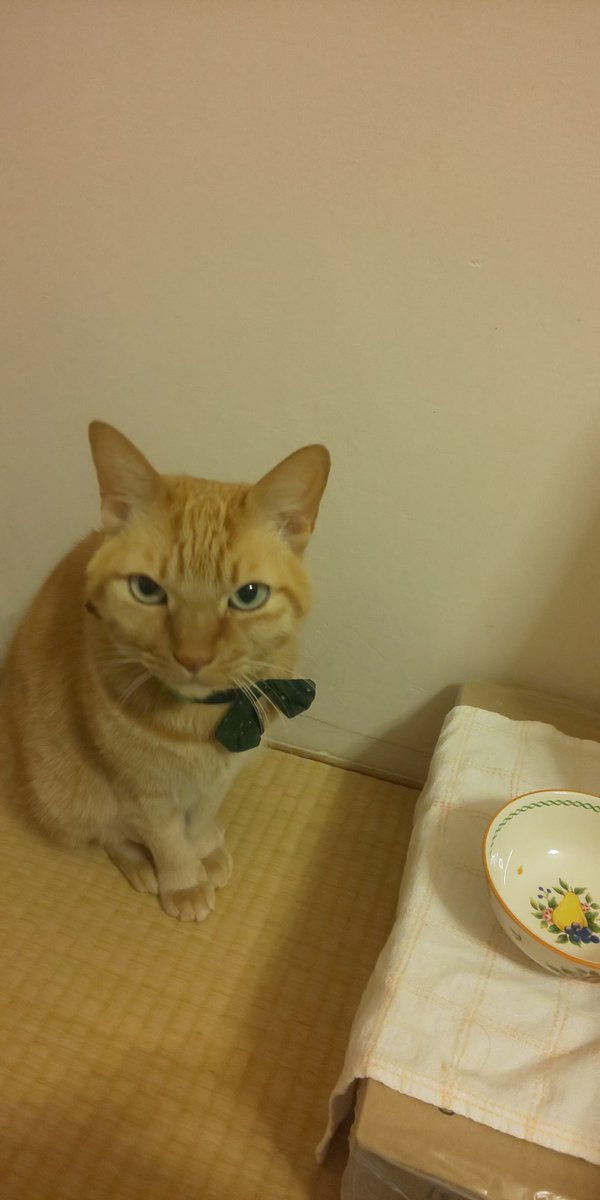 お皿、昨日のままにゃ。洗って入れてにゃ🐱