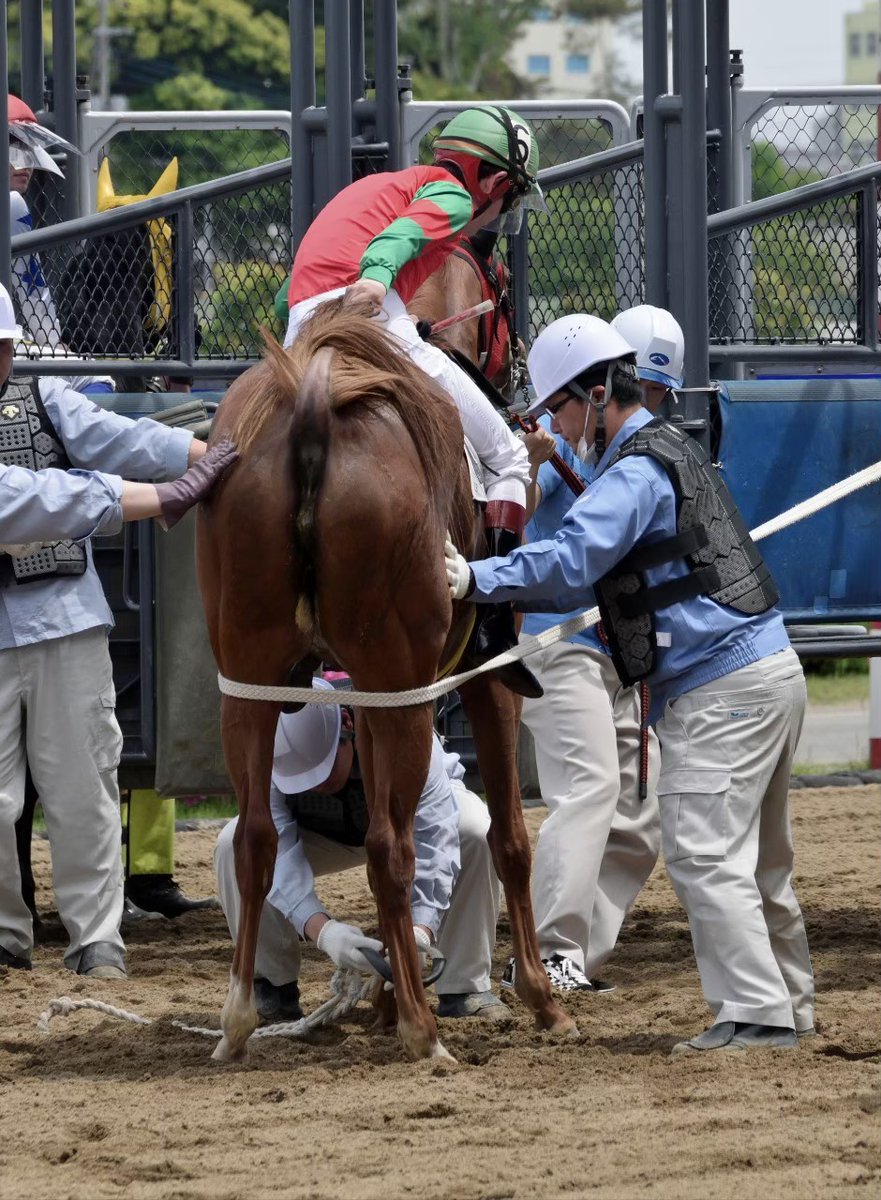 馬の尻尾は成人男性の腕並に太いんだよね😆前に初めて見た時は「内側はツルツルしてるんだなー」と思った。中々ゲートに入らない時は尻尾引っ張って前に進めさせてたなー。 https://t.co/HmLeOsfzqM