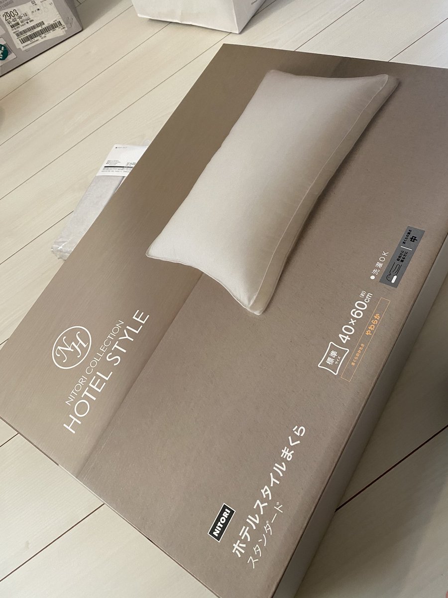 これはやばいニトリ大革命起きた。今日安眠を求めてニトリに枕買いに行って気になったこの枕を購入したんよ。寝ようと思ってこの枕に頭置いた瞬間明らかにいつもの枕と違う。いつも寝るだけで肩凝ったりしてるけどこの枕は期待度高い。今枕流石ホテルスタイルって言うだけある最高すぎる。おやすみ
