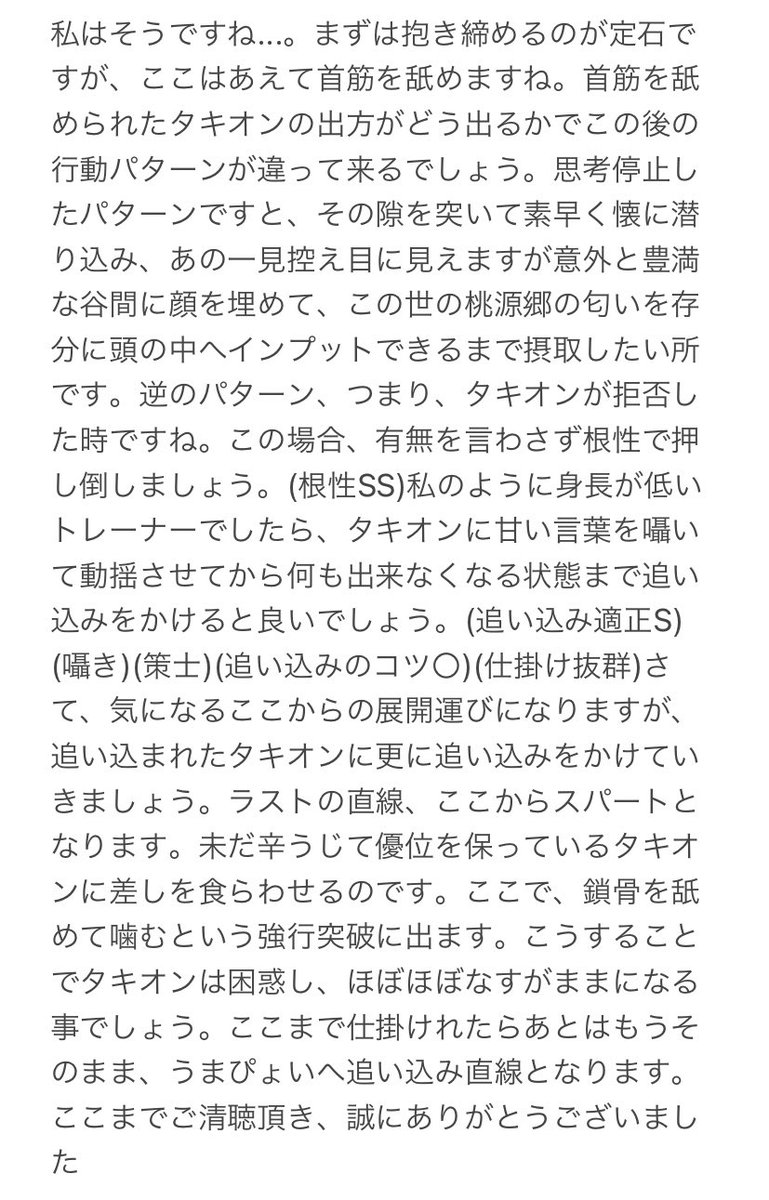 一体どうしてこうなったのか、書いた本人ですら理解できない。おかしい、もっと真面目なものを書こうとしていたのに…!タキオンがあまりにも愛おしすぎて… https://t.co/OBSSU84Xl3