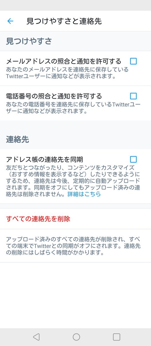 ➡️設定とプライバシー▶プライバシーとセキュリティー▶見つけやすさと連絡先▶あなたのメールアドレスを~とあなたの電話番号を連絡先~にチェックが入っていたら外す