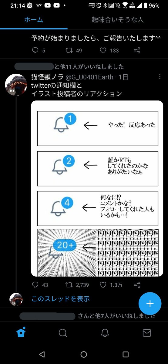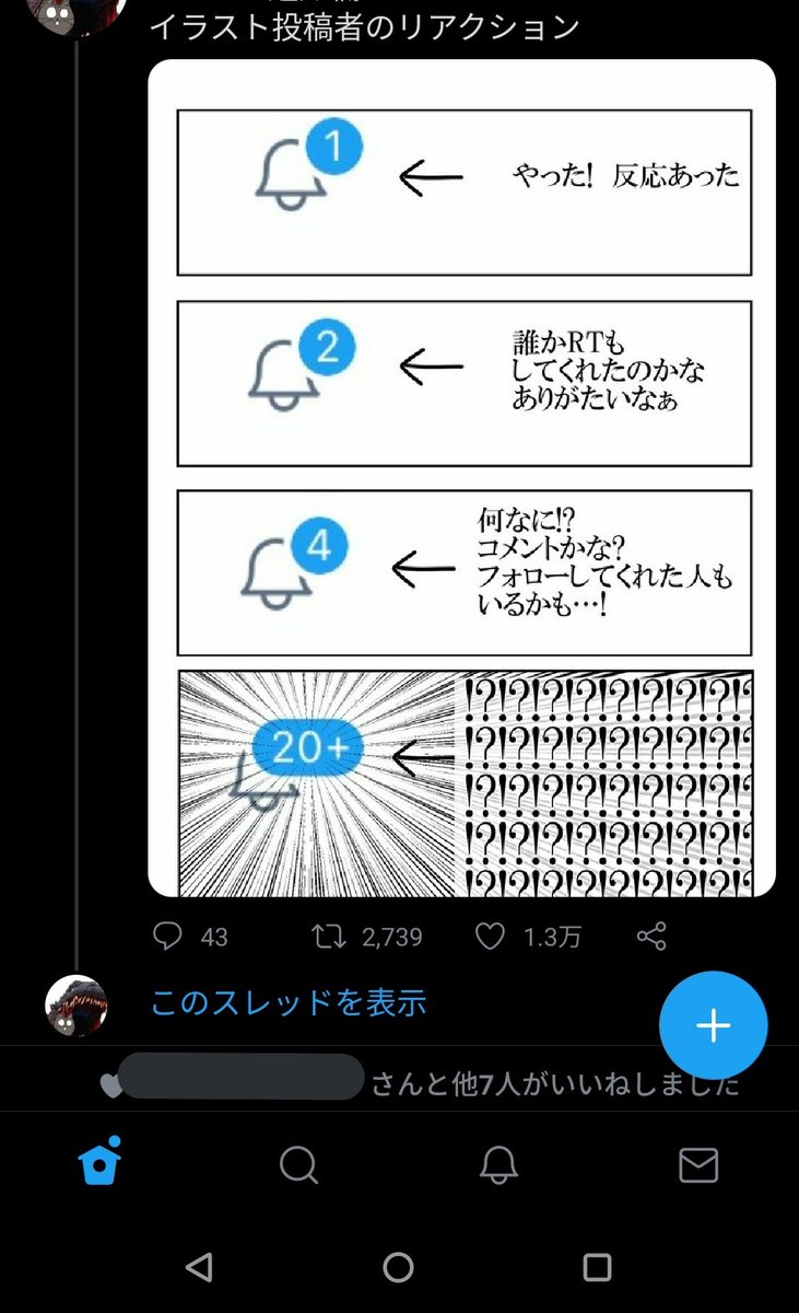 元々、イラストばかりでツイートはあまりしないので、少しでも通知貰えたら嬉しいです。ただ、20+ともなると、炎上している可能性もなくはないので緊張はします。
