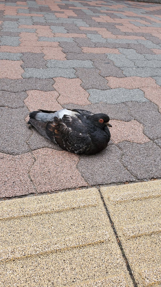 私も朝会社に歩いて通勤するときにゴミ袋落ちてる…、帽子落ちてる…、なんか落ちてる…と思うと鳩なこと多い。