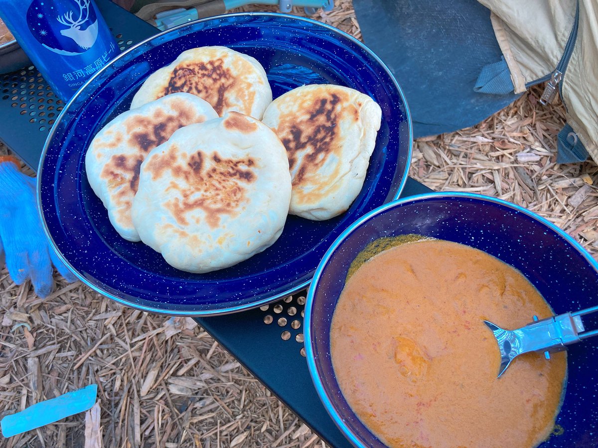 こねる作業だけ力がいるのでちょっと大変だったけど、キャンプで手軽にナンが食べられるのは嬉しい!