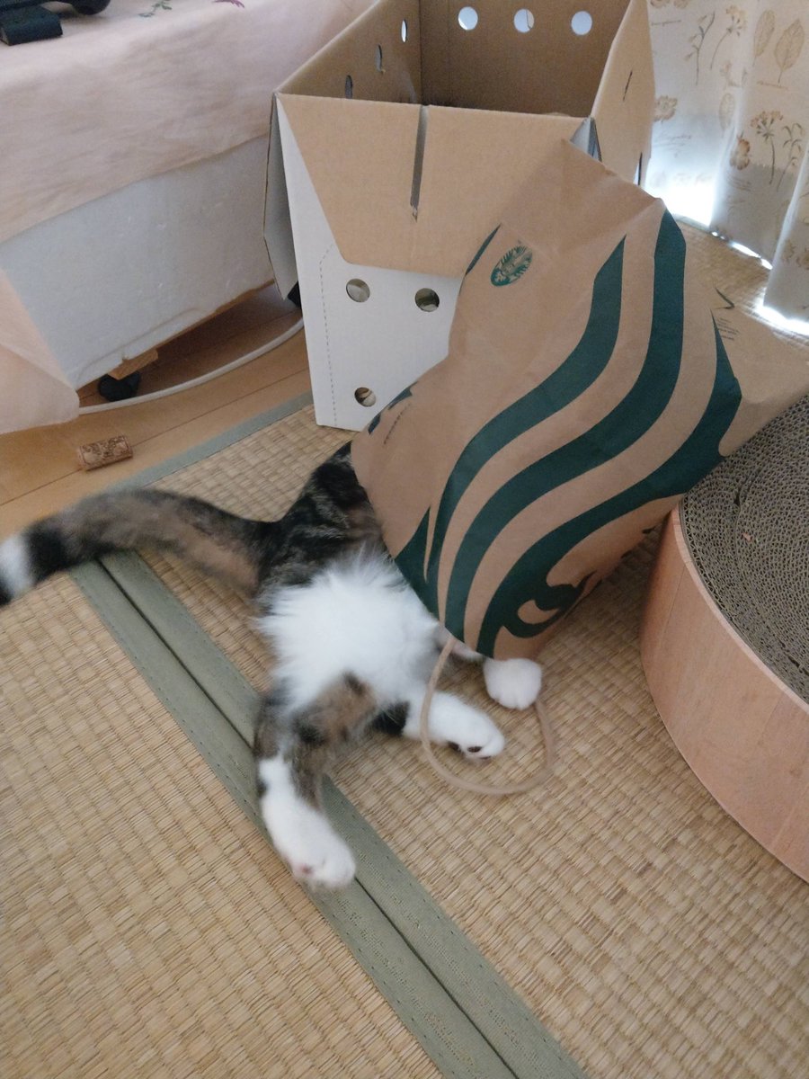 昔、実家で飼ってた猫も紙袋大好きだったな。