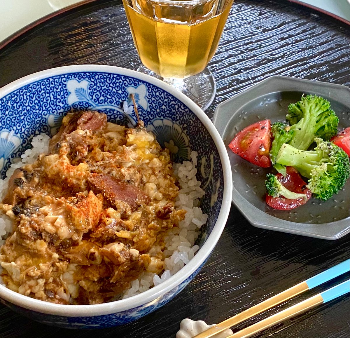 サバ缶を豆腐から出る水分で煮て卵でとじるだけで甘辛味が最高な丼作れます。包丁なし・完成まで10分かからない位簡単だけどほんと美味しい。