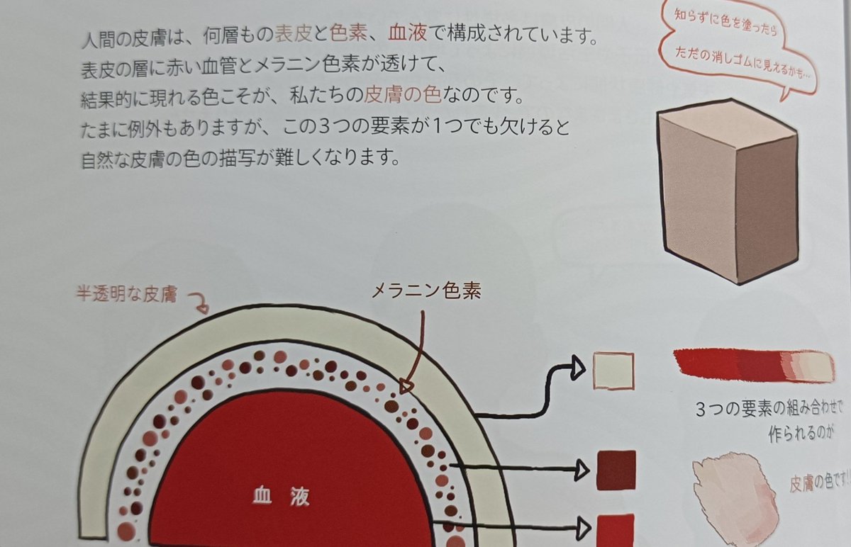 つよつよ絵師3は肌塗りする時「半透明な皮膚とメラニン色素と血液の組み合わせで作られるのが皮膚の色でこの内一つでも欠けると自然な皮膚の描写が難しくなります」とか言い始めるくらい。 https://t.co/DlFKDV6Knu