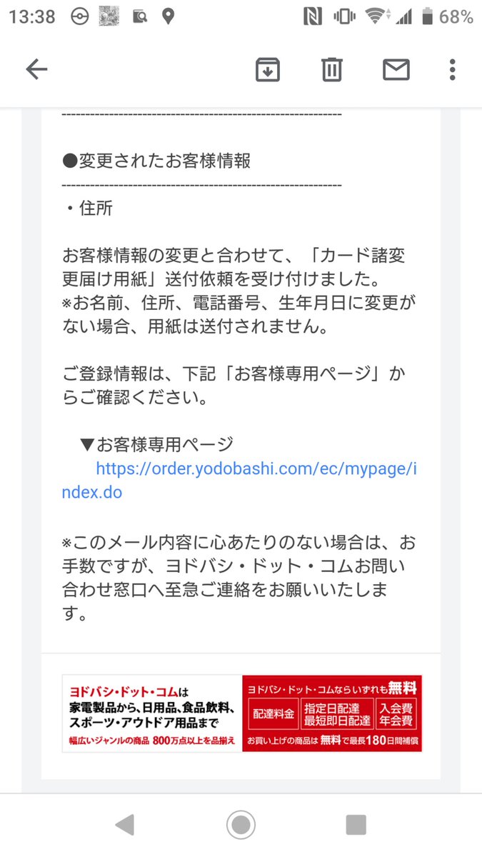 で、メールが届いた時間帯はヨドバシにログインして買い物中だったのよね。 https://t.co/RxYLksUvX4