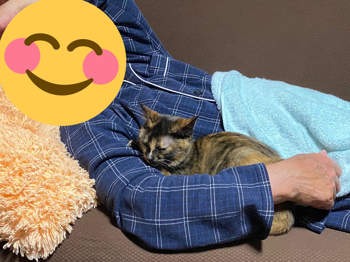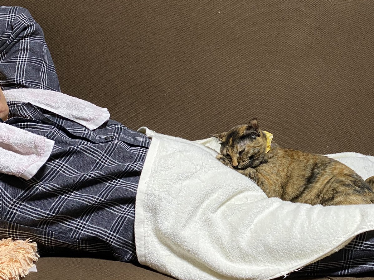 「父はネコを家に入れることに大反対していた。ネコを家に入れて1日目の姿です」