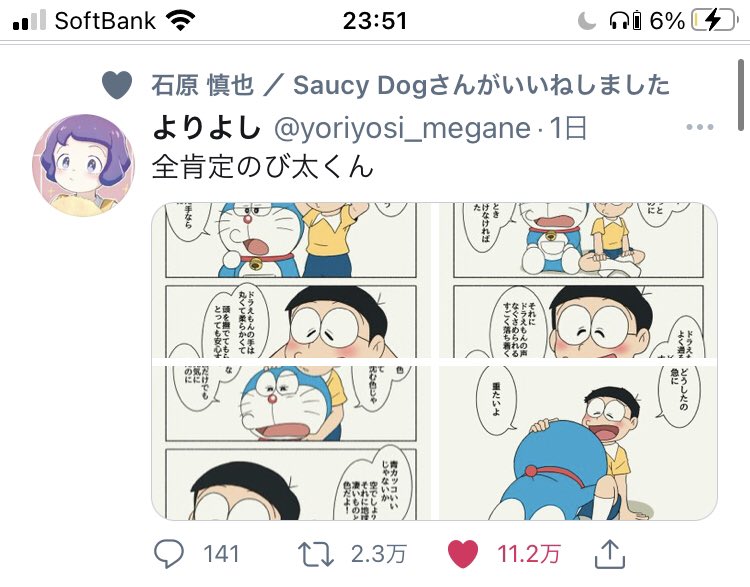 めちゃくちゃいい話やし何よりこの全肯定のび太くんを いいね してる 石原慎也 / Saucy Dog が尊い
