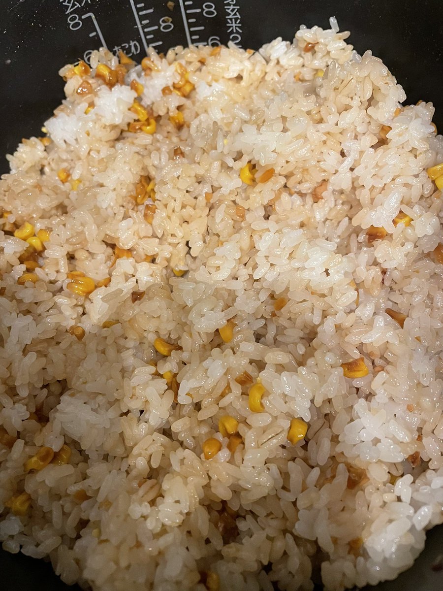 買ってきたとうもろこしが小ぶりでお米の量に対して少ないかなと思って、人参混ぜてみたけど美味しくできた〜♡
