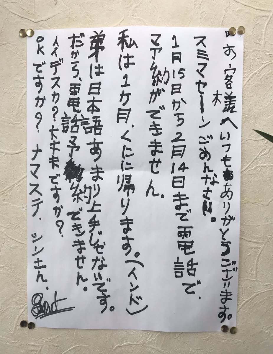 インドカレー屋の置き手紙。OKだろ。