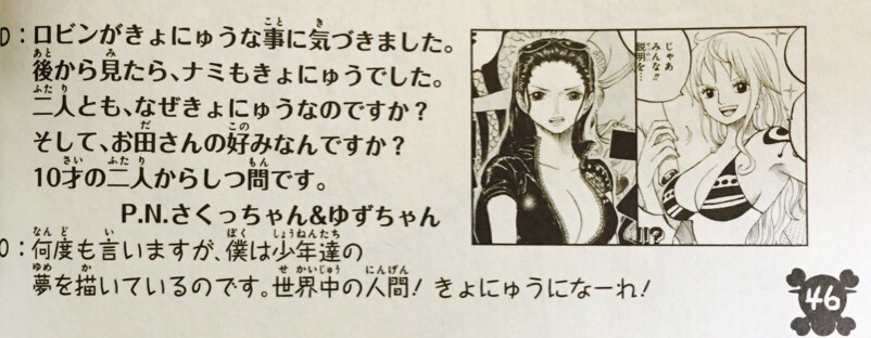 尾田先生はなるべくキャラに『殺す』と言わせないようにしてるとか。お婆様の薫陶を受け「そういう強すぎる言葉をむやみに使ってはならない」と思っての事だそうで。
