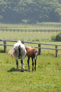 なおマックイーンも芦毛だけど現役時代は黒白の斑みたいな感じの馬体でしたねえ。多分原毛色は黒鹿毛じゃないかと。