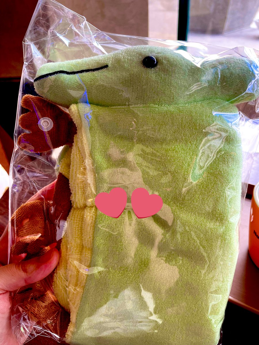 ちょこんと肩に寄り添ってやさしくハグしてくれるプテラノドンのタオル。