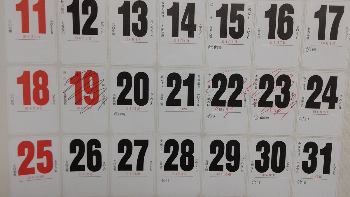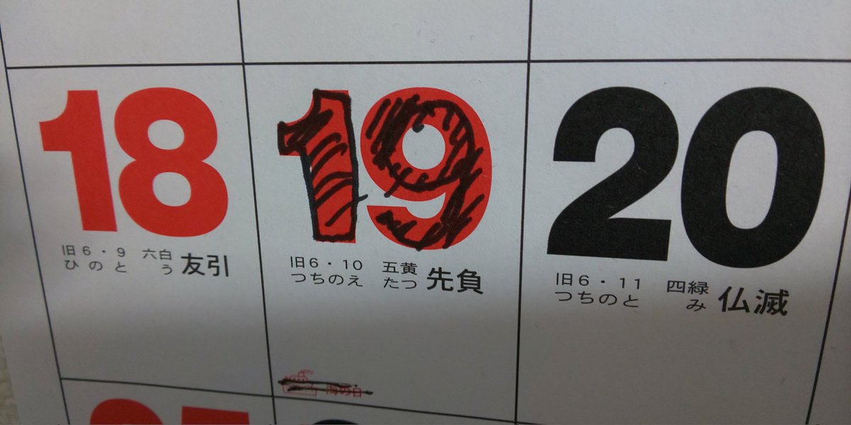 2021.07.19 ツイート maru祝日と勘違いしないよう 夫がカレンダーの19を 鉛筆で黒く塗ってました🤣 madoka(無言follow失礼します)@_madoka_k7祝日と勘違いしないよう 夫がカレンダーの19を 鉛筆で黒く塗ってました🤣07:58 – 2021年07月19日返信リツイートお気に入り ツイートに対するネットの反応☆静風のぞみ a.k.a. なつみかんな@snozomiうちも。 雑ですが(^^; https://t.co/gCJJjNtvPN14:34 – 2021年07月19日返信リツイートお気に入りゆうこ@nana_west昨日行った、ちょっと古いお好み焼き屋さんのカレンダーの19日も黒く塗ってあったw14:31 – 2021年07月19日返信リツイートお気に入りやぶ@yabu368職場のカレンダーが油性マジックで黒くなっている😂14:25 – 2021年07月19日返信リツイートお気に入り特攻のゆりい(命名by晁直さん)@7/14→lynch.ULTIMAツアー渋谷公演@vrock_civa_yrk私もスケジュール帳、赤もしくは黒で上から塗った14:00 – 2021年07月19日返信リツイートお気に入り甲斐 櫂🌈🐾🌤️@Kaiken_Kaiおんなじやわ〜12:42 – 2021年07月19日返信リツイートお気に入りつむぎのこころ@tsumugicocoroさっき職場のカレンダーに同じことやったwwwwwwwwwwwwww12:35 – 2021年07月19日返信リツイートお気に入り大森博子 Hiroko Ohmori🐟🌤️@11111hiromorinnうちも同じようにしました(*‘ω‘ *)12:21 – 2021年07月19日返信リツイートお気に入り小松菜🥝@Komatsuna_0227うちの職場と一緒w12:08 – 2021年07月19日返信リツイートお気に入り ♪鎌倉栞♪@kamakurasioriうちもこれやった。 8月11日(水)もついでに黒く塗っておいた。12:05 – 2021年07月19日返信リツイートお気に入り黒猫@GlKg4同じこと私もした🤣🤣🤣しかもこの方と同じカレンダーだわ😂12:03 – 2021年07月19日返信リツイートお気に入りな つ み 🎋 ⭐️@natumi_reiwa私も同じ事をやった(笑) 22日と23日も赤くした(笑)11:48 – 2021年07月19日返信リツイートお気に入りちぃ@ぎねぎねする@totoro_dngr弟と同じ事してる。 7/19を祝日と間違えないよう黒ペンで塗り潰し、7/22と7/23を赤ペンで塗り潰してた。11:47 – 2021年07月19日返信リツイートお気に入りあお@aoiro38pうちも19は黒く塗って、22と23は赤く囲いました(笑) ちなみに8/11の山の日も8/8(日)に移動してて、8/9(月)は振替休日なので、ぜひそちらも気をつけて(笑)11:22 – 2021年07月19日返信リツイートお気に入り濡れひよこ。@honesto_blue109うちのカレンダーも黒く塗られてた(笑)11:12 – 2021年07月19日返信リツイートお気に入りしーちゃん@shiichanmiichanいずこも同じですな https://t.co/hiuJ5pAmRm10:54 – 2021年07月19日返信リツイートお気に入り お酒こわい(*_*)@akirakia22と23は黒のままにしておく作戦w10:54 – 2021年07月19日返信リツイートお気に入りほこほこ 足格納(シロチビコ)@MYDTfcEaBzuusuYうちはマジックで塗りつぶしましたww10:34 – 2021年07月19日返信リツイートお気に入り相方のオカン (はりぃ☆@ika_sake_omoroiまったく同じ事してる( *´艸`) https://t.co/z3XlQMPuWb10:31 – 2021年07月19日返信リツイートお気に入りサイリィ@ゴーストファイター@SairisuGhostなんと言うかどす黒いオーラ纏った19日10:19 – 2021年07月19日返信リツイートお気に入りSmash582@smash582好き~♡09:55 – 2021年07月19日返信リツイートお気に入りピンポンパール @@hahi0630今日は、お休みじゃ無いよ~☺️‼️09:44 – 2021年07月19日返信リツイートお気に入り近藤史子@fumicondoかわいー!!!笑09:42 – 2021年07月19日返信リツイートお気に入り ginko8@ginko8oroこれのおかげで、100均に19日が赤字のカレンダーがたくさんあった つまりとてもたくさん流通していると言うことw09:24 – 2021年07月19日返信リツイートお気に入り猫熊@孤高のIT戦士⭐️@negimagurottさっきまで祝日と思ってたら嫁に今日は平日と言われ愕然としているなう😓09:23 – 2021年07月19日返信リツイートお気に入りイのか/inoka@inoka_mangaあぶねっ09:06 – 2021年07月19日返信リツイートお気に入りヨロンブルー@yoronblue天才。08:55 – 2021年07月19日返信リツイートお気に入りれん@xx_rinxren_xx職場のカレンダー、コレしたわー22、23は修正テープで消して赤ペンで書き直したった…笑08:50 – 2021年07月19日返信リツイートお気に入りアヤノ🧡小さくてもHappyなチームの業務デザイン@ayano_web私も塗りました😆08:49 – 2021年07月19日返信リツイートお気に入りあっちゃん@_atsuchan_ホント今日祭日だと思ってたわ…08:45 – 2021年07月19日返信リツイートお気に入りemu K*****@emugtam我が家のカレンダーもこんなふうに塗ってます。家族揃って紛らわしいんですもの。 https://t.co/9XqrG0LXJI08:40 – 2021年07月19日返信リツイートお気に入りあきら。@_a_ki_ra_2うちの夫もとても雑に塗りつぶしてました(笑 https://t.co/ljxF2VKXVX08:36 – 2021年07月19日返信リツイートお気に入りみはの@mimi_hana_nodoぬか喜び予防08:36 – 2021年07月19日返信リツイートお気に入りUMA次郎【サイドFIREを目指す外資営業】@リベ大、リベシティ@umagiro1211黒く塗るという発想はなかった…。UMA次郎は今週末23日と24日を稼働日と勘違いして客先アポ取ろうとしたクチです、すみません。08:33 – 2021年07月19日返信リツイートお気に入りけいちゃん@土浦@jp_ke