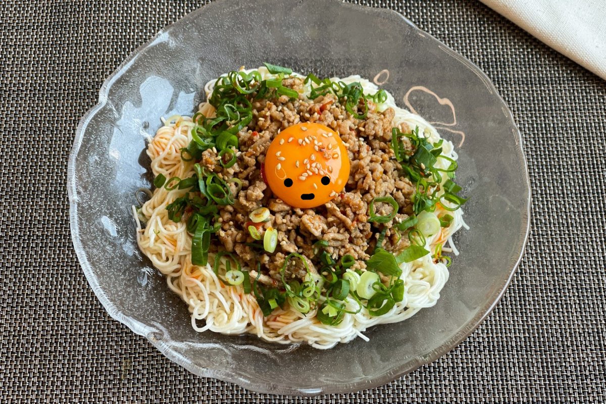 ④きざみねぎ、ラー油、卵黄を乗せて完成!