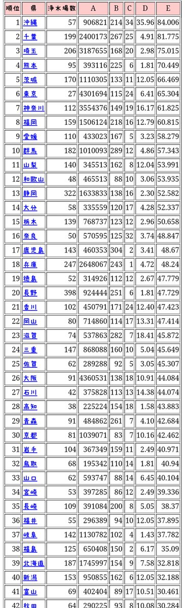 引用元のsoft water clubでも記載してるように、取水地(浄水場)ごとの差異のほうが遥かに大きいので都道府県ごとはあまり当てにならない。