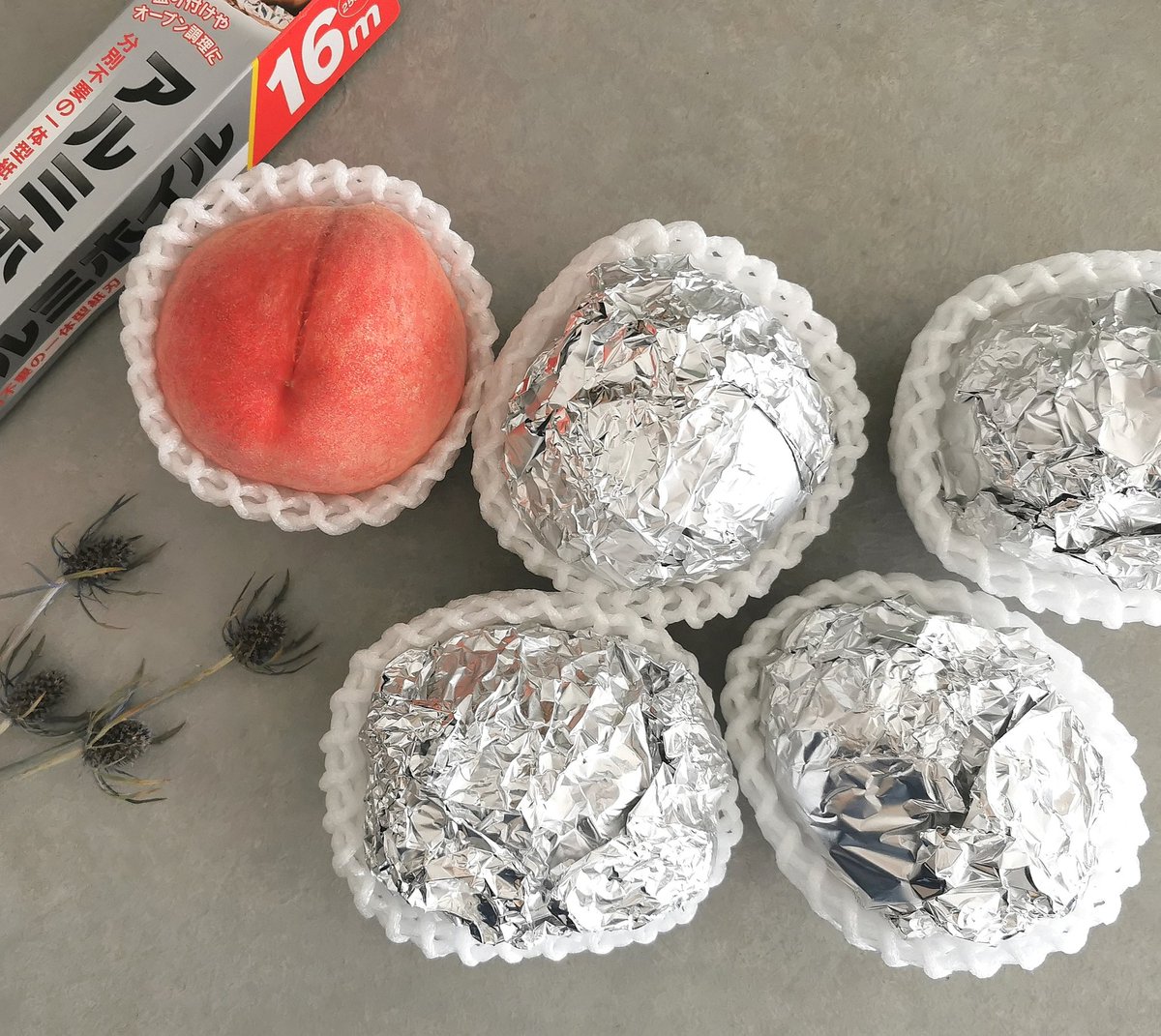 備忘録。桃🍑の保存にはアルミホイル。😆