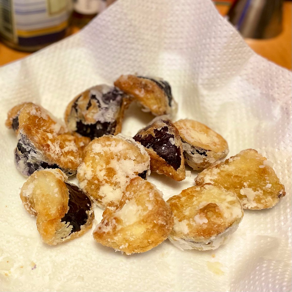 ブロッコリーに片栗粉を使いすぎて、徐々に衣が薄くなってくー…🥲🥦🍆