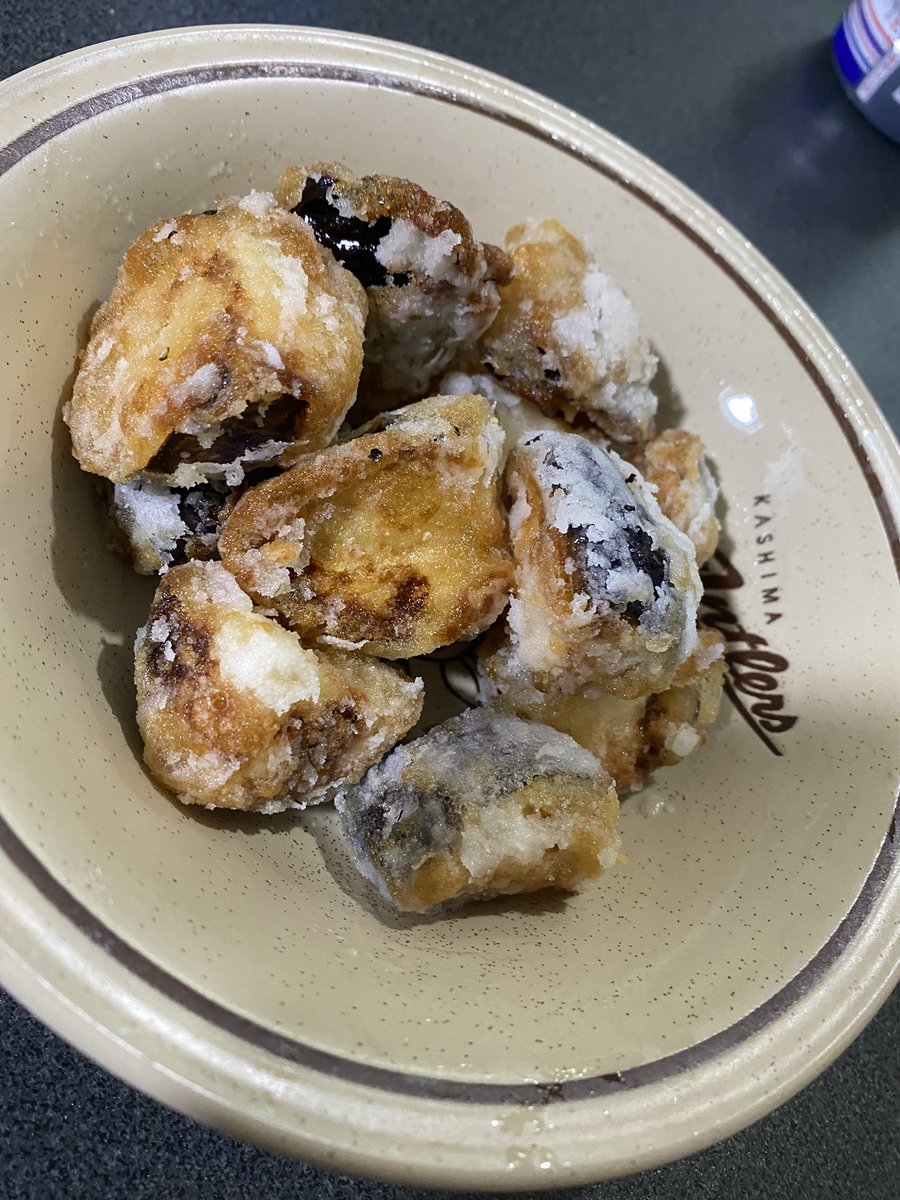 最近は唐揚げ専門店が美味しくて「家でつくらんでええやん」って思ってたけど、ビールで揚げたて食べたい!茄子の唐揚げはお店にないし🤤