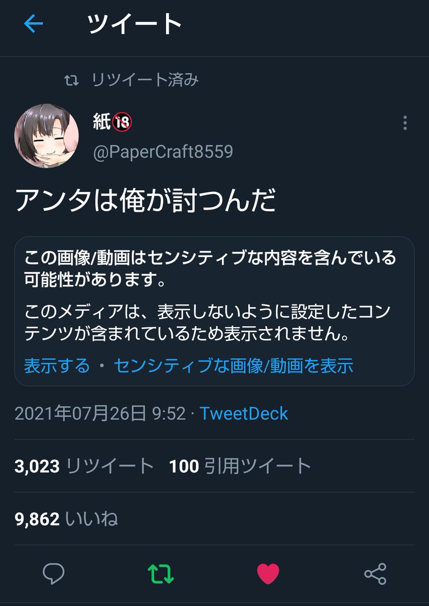 2021.07.26 ツイート maruアンタは俺が討つんだ 紙🔞@PaperCraft8559アンタは俺が討つんだ09:52 – 2021年07月26日返信リツイートお気に入り ツイートに対するネットの反応しゅわりん☆どり~みん@ihsoyiK0066アイカツ10:23 – 2021年07月28日返信リツイートお気に入りアルヨ@aruyoこれもう、例のプールみたいに例のポーズで通るくらい派生できてますね。06:25 – 2021年07月28日返信リツイートお気に入り@🦴🍖デカイ鳥@abon_game覚醒した一物03:26 – 2021年07月28日返信リツイートお気に入りTAKA@アフターコロナ時代よ、早く来い!@TAKA_O1984パッと思い浮かんだのが、シン・アスカだった(笑)02:19 – 2021年07月28日返信リツイートお気に入り錐夜@栽培係@kiriyayuriサンライズ立ち22:32 – 2021年07月27日返信リツイートお気に入りおろちゃん🍊めっちゃ低浮上 ことり最推し2年目@oroshi25凄いw もう答え出てるのに色んな人がインパルスとか運命のこと言わないw20:21 – 2021年07月27日返信リツイートお気に入りyase69man@yase69man_zeroテキスト読むまでパンツ引っ張られてるのかと思ったw19:55 – 2021年07月27日返信リツイートお気に入りかずひろ@kazuhiro_artどぶろっくの「大きなイチモツをください〜♪」というのがバックに聞こえる気がする……。19:33 – 2021年07月27日返信リツイートお気に入り ぴっぴ@67e53c0f5179439今日!ここで!!19:21 – 2021年07月27日返信リツイートお気に入りみかんオレンジ@af0ed1dNxihccng主役を取られた人が言うと、とても似合う😁18:38 – 2021年07月27日返信リツイートお気に入りパクマナ@猿回され師@mYnmYXig5LWZ4eh前大会のレジェンドに金メダル掻っ攫われそう18:09 – 2021年07月27日返信リツイートお気に入りす2maru🎧📷🎳🏎⚾️大谷翔平しか勝たん@sunimaru0守りたい世界があるんだ! https://t.co/IZP4SbhWap 17:53 – 2021年07月27日返信リツイートお気に入りまぐ@🏟️で新ユニ早く着たい@mag_0701サンライズパース17:09 – 2021年07月27日返信リツイートお気に入りぺちを さぶ@damaogatuyoidak今日ここで、!!!!!16:37 – 2021年07月27日返信リツイートお気に入りHiver Laurant@laurant1489すげえ勢いでち○こ巨大化したのかと思った16:19 – 2021年07月27日返信リツイートお気に入り リョータ@1SHOT_3jouleサンライズ立ちやん(笑)14:58 – 2021年07月27日返信リツイートお気に入り夏樹「コロナウイルス対策本部」@katakuriko77777今日、ここで!!14:56 – 2021年07月27日返信リツイートお気に入りジゅん🙈🙉🙊@j_un_Extra今日!ここで!!!14:09 – 2021年07月27日返信リツイートお気に入りインスタントのそばおじさん@soba20215_urリプ欄正解がいないの面白いわ14:02 – 2021年07月27日返信リツイートお気に入り義虎@黒アリスさん@Dantalio今、此処で――ッ!13:25 – 2021年07月27日返信リツイートお気に入りメダカ・@medaaaaaakaaaaaリプ欄おもろい13:18 – 2021年07月27日返信リツイートお気に入り島風P@Simakaze_P似たようなの多すぎて草なんだわ13:05 – 2021年07月27日返信リツイートお気に入り ハヤカワ@k0pH5beye8WD47Vサンライズ立ちしてる12:58 – 2021年07月27日返信リツイートお気に入りあまぎゅう@シノアリス、ウマ娘垢@h7sd6D9rzroWo5Qどうしてもシンの声で再生される…12:51 – 2021年07月27日返信リツイートお気に入りsorutymata@Vtuber、新世界到来!主の名はがうるぐら!!!(7/4)@sorutymataまた戦争がしたいのか、あんたたちは!12:35 – 2021年07月27日返信リツイートお気に入り笹菜育巳@sunny337193勇者パース金メダルは誰の手に12:28 – 2021年07月27日返信リツイートお気に入り竹ちゃん@take_ljアンタが悪いんだ… アンタが裏切るからー!!12:15 – 2021年07月27日返信リツイートお気に入りたくやふぉと📷@TakuyaPhotosズボンからクソデカチンポ出してるようにしか見えない12:03 – 2021年07月27日返信リツイートお気に入りNergal@nergal416この構図ありすぎてどれのことやら。11:56 – 2021年07月27日返信リツイートお気に入りなぁ@nah0414tこのシルエットでズボンからナニかが出てきたと思った私は精神が穢れている10:34 – 2021年07月27日返信リツイートお気に入りMasa@Masa199967今日…ここでっ!!10:04 – 2021年07月27日返信リツイートお気に入り【棒棒鶏!】ちゃりんこライダー🐎@fon10261026今日!ここでぇ!!09:55 – 2021年07月27日返信リツイートお気に入りユプバル・やきにく・谷口@yakiniku_Tweetリプ見てたらいくらでもこれの元ネタみたいなやつあるの草09:16 – 2021年07月27日返信リツイートお気に入りキマイラ/Shiato_筋肉豆腐🐬┃GP@Sirogumi_Kimair「また戦争がしたいのか!アンタ達は!!」これしか一択だったわ https://t.co/TiYZRyAiaC08:43 – 2021年07月27日返信リツイートお気に入りRai@カヴー大好きFoiler@Raimoon44OPアレンジ激アツBGM → 必殺技名宣言 → サンライズパース → 雷 or 炎 or オーラ → ジェットダッシュ紳士淑女の義務教育ですね( ˘ω˘ ) https://t.co/rA1naXkO13 08:40 – 2021年07月27日返信リツイートお気に入りキング☆ヤス@kitayasu0530小次郎の風林火山かなw07:39 – 2021年07月27日返信リツイートお気に入りPTRS1941@welcometakamoriズボンからちんこ飛び出したみたいなピクトグラムだな07:10 – 2021年07月27日返信リツイートお気に入り湊 星梨華(セリ