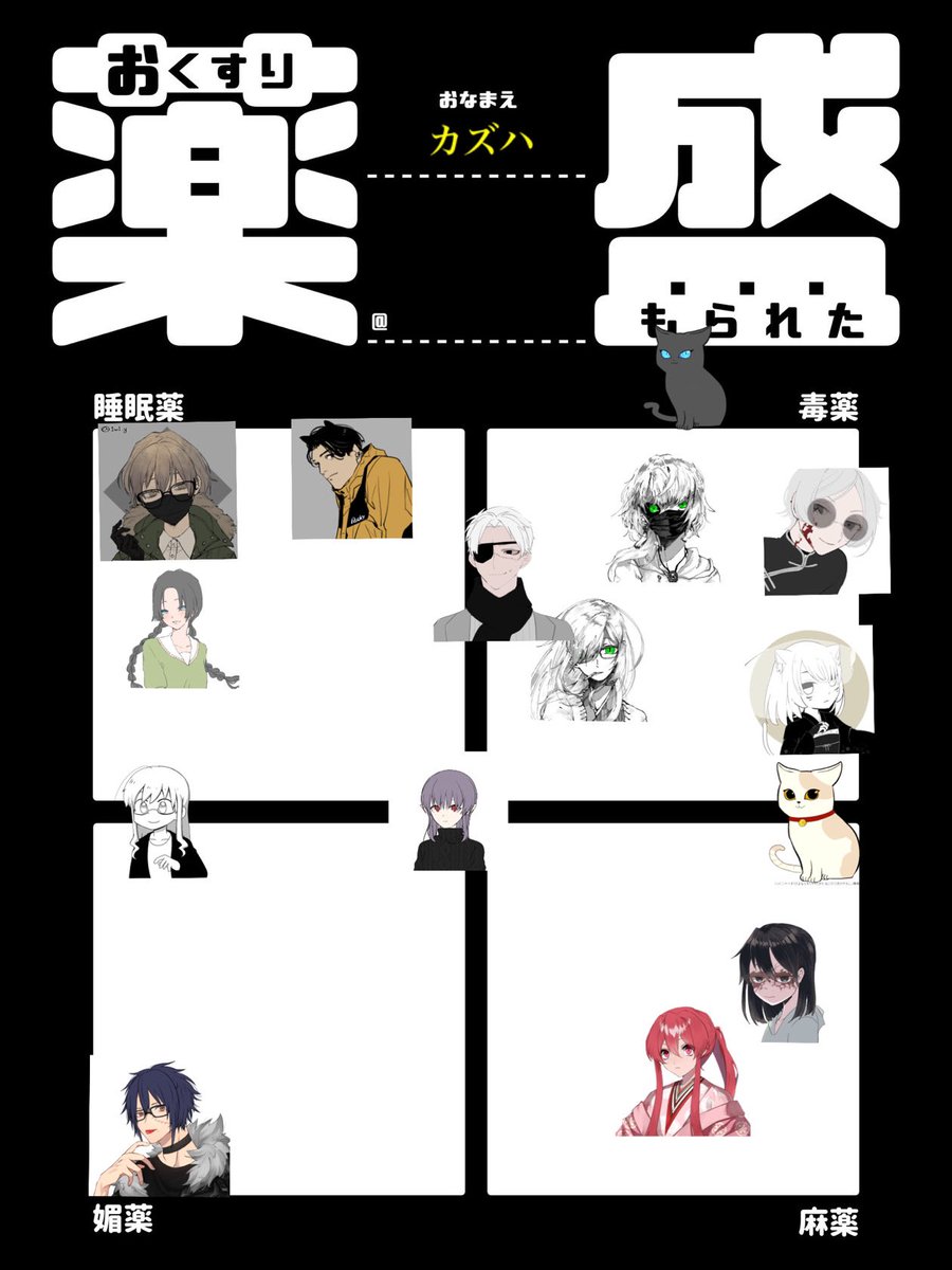 イメレス素材なのはわかるんだけど、一瞬「フォロワーに何薬を盛りたいか」的なものかと思ってしまった。