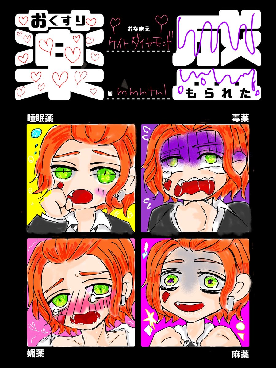 芸人様のテンプレお借りしてケイトくんで描きました(っ◜௰◝c)なんかうるさくてごめんです😂😂😂けーくんも薬盛ってごめん❤😇💦 https://t.co/H5qoLrcAd0