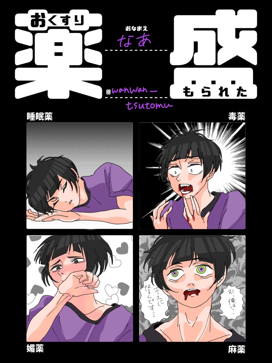 麻薬ダメ、絶対だけど二次元や創作物で推しが少量投与され、涎垂らしてとろ目させてるところ見ると興奮する変態です。