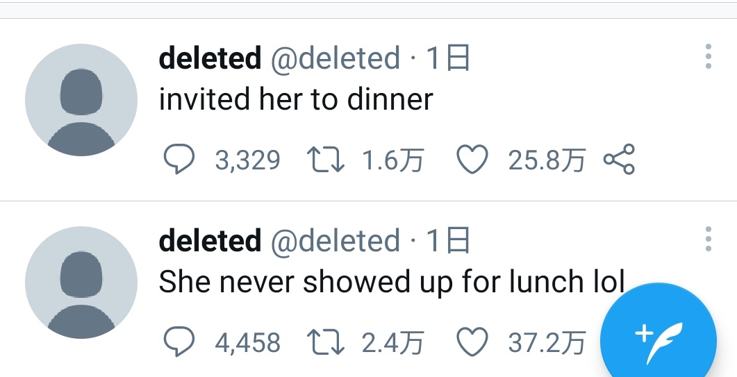 しばらく更新が途絶えていたアカウントが、突然「飯食ってきた」みたいな会話で復活するのは、うちのTLでもよくあることw
