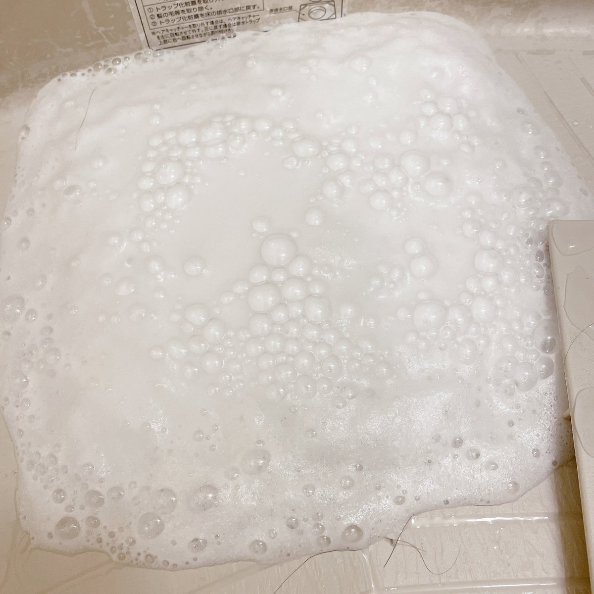 これ凄すぎた…お風呂の排水口ってどうしても黒いヌメヌメが発生して触るの嫌すぎて掃除が苦痛だったんだけど(しかも放っておくと臭くなる)、この粉かけて、ちょっとお湯かけたらモコモコと泡出てくるから蓋閉めて放置して流すだけで排水溝周り、蓋裏まで全部ツルピカになる。楽すぎ、擦り洗いいらん。