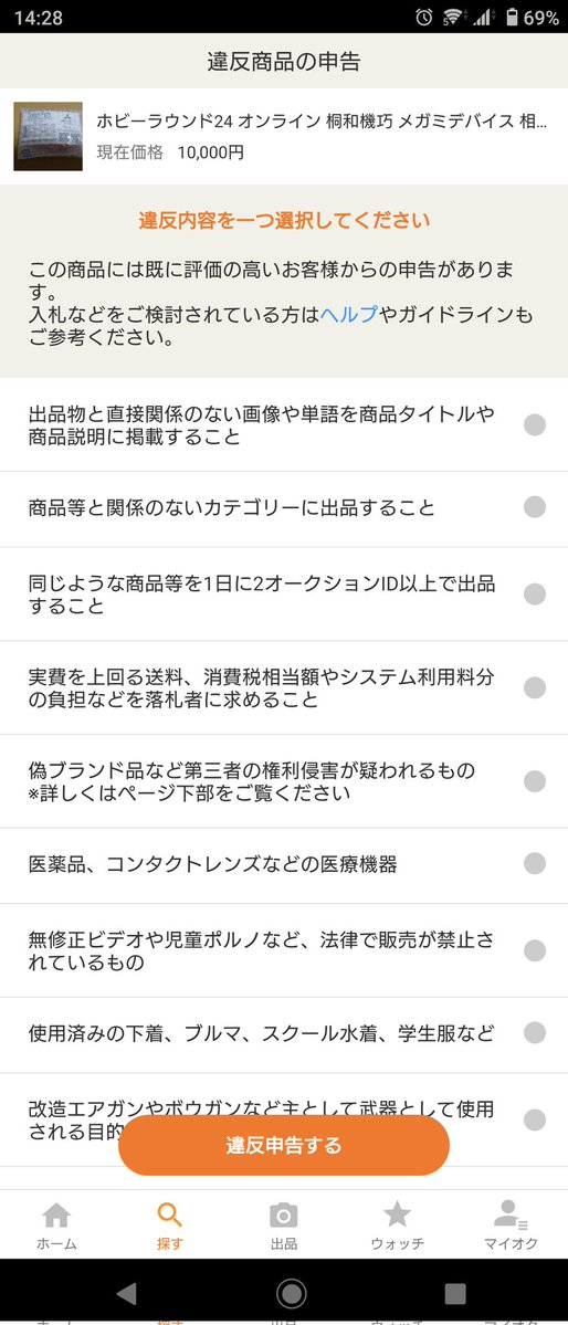 けどそれはそれとして転売屋はムカつくし版権的にもアウトなので「偽ブランド品など第三者の権利侵害が疑われるもの」から通報した