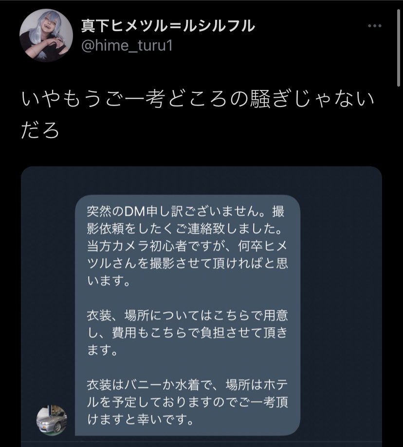 撮影した物を何にどこに使うのかどう言った考えで依頼して来たのかが皆無だから怪しさしかないんだよな。言葉遣いだけ正せば良いもんじゃない