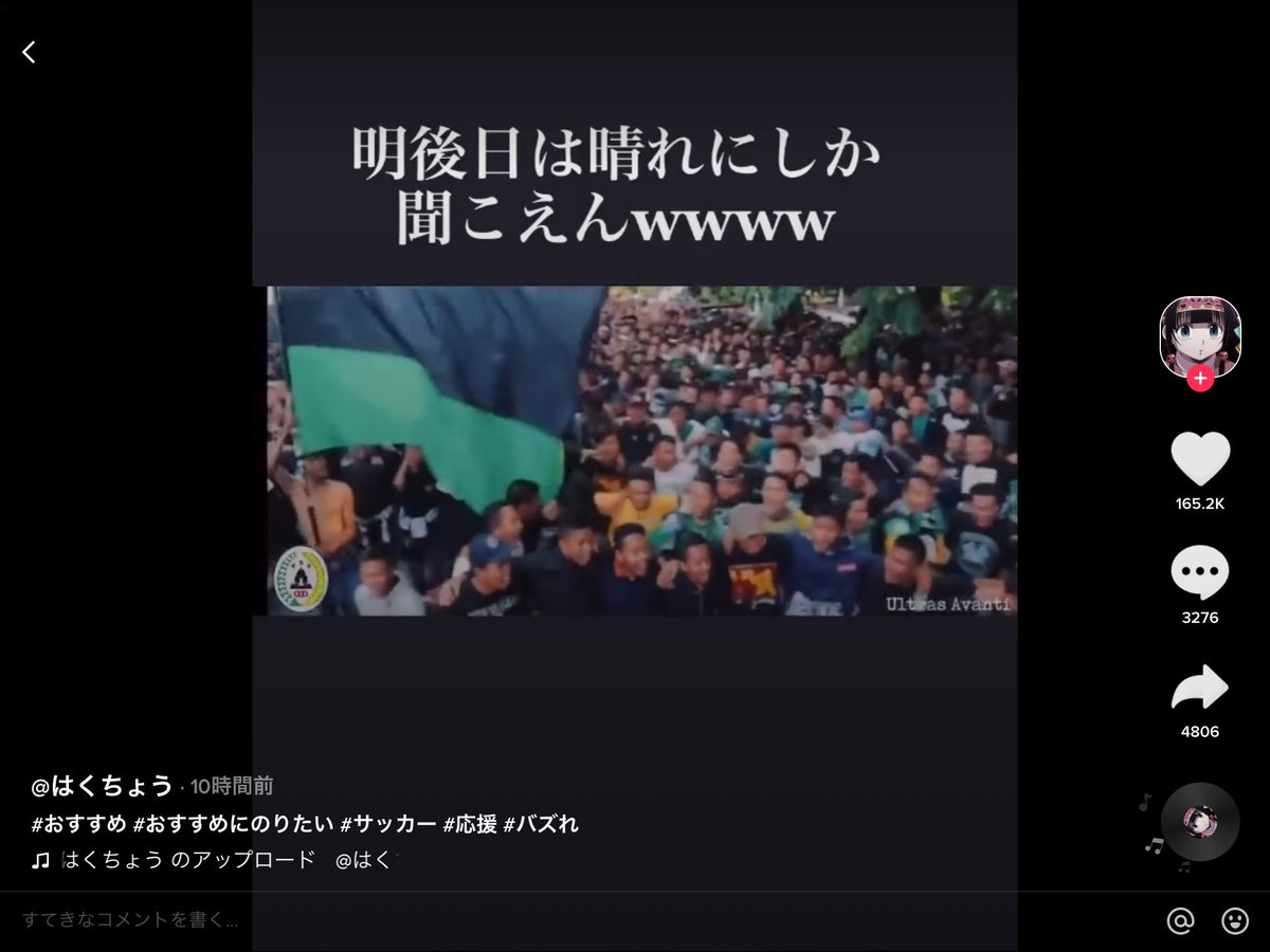 色んなクラブのultras見てたんだけど、インドネシアの、とあるチームのチャントが「明後日は晴れ」にしか聞こえなくて腹抱えて笑ってるwwwwwwww