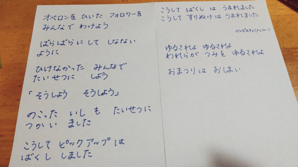 オベロンをひいた フォロワーを みんなでわけよう ばらばらにして しなないように ひけなかったみんなで たいせつにしよう