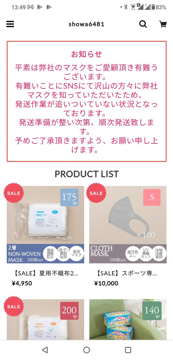 マスク不足の時にマスク製造を始めて下さったShowaさんが8000万の赤字と先ほどのツイートで知り、心ばかりですが支援の為に購入させて頂きました。