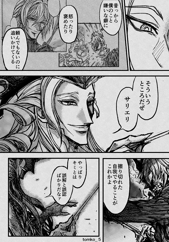 藤田先生の画調はアマデウスもあうよねって話になったので描いたよ!! 通常より角砂糖一個分だけ自我があるサリエリ先生を添えて(真っ…