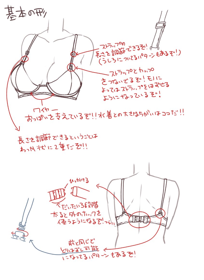 書き方というか、リアルはブラはワイヤーが入っていないやつもある。バストカップによってホックの数が変わる。 https://t.co/T29bXMjprZ