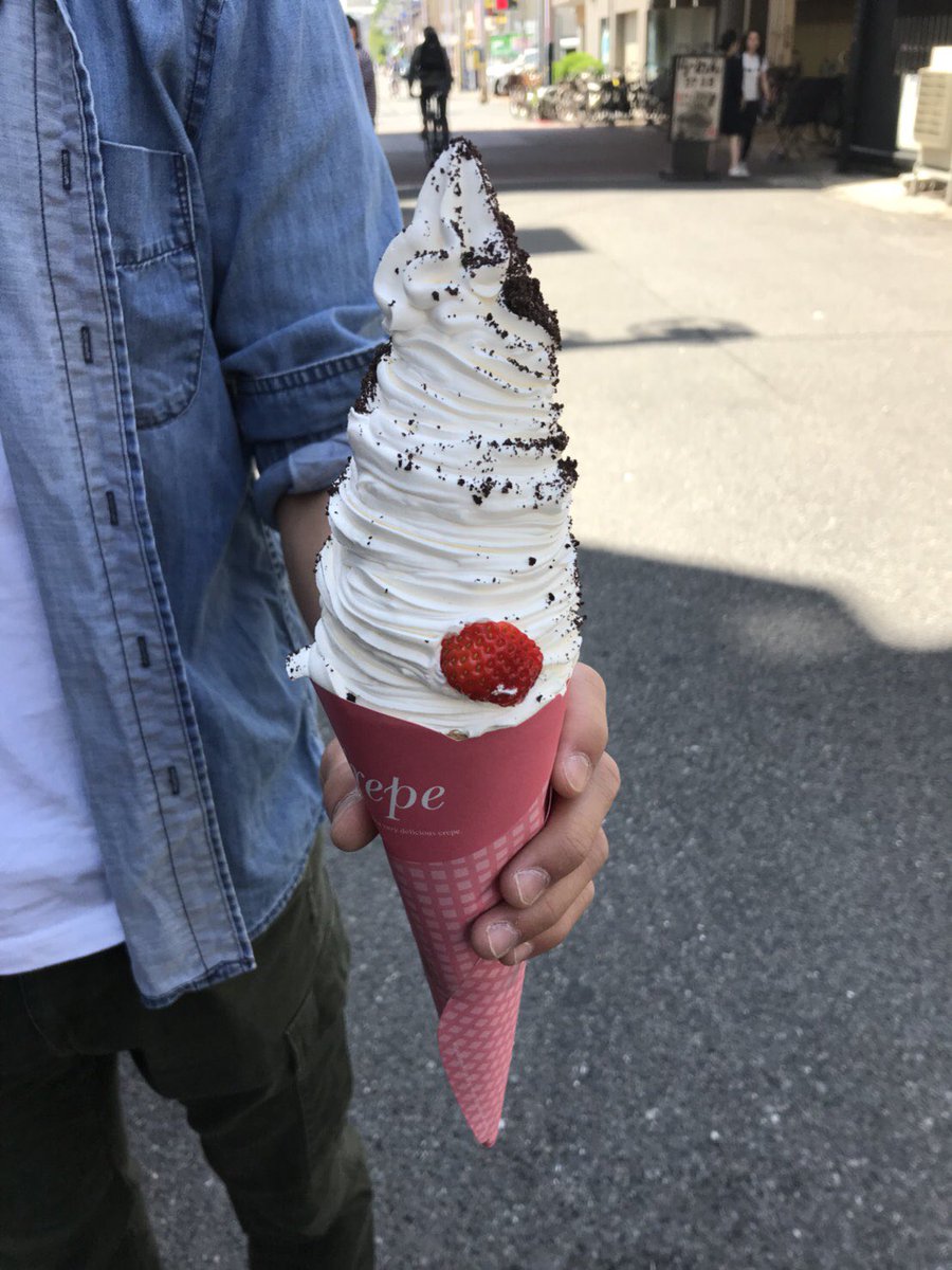 大阪の長居駅らへんにあるクレープゴリラという店、生クリーム、クレープの究極みたいなところ