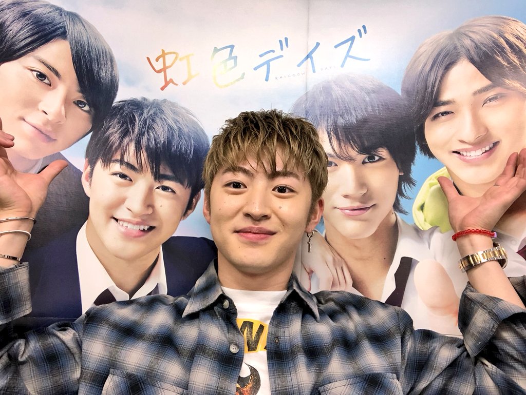 テレビ出演の合間に、佐野玲於さんも映画『#虹色デイズ』のスタンディで記念撮影遊び心あふれる写真を撮ってくれました